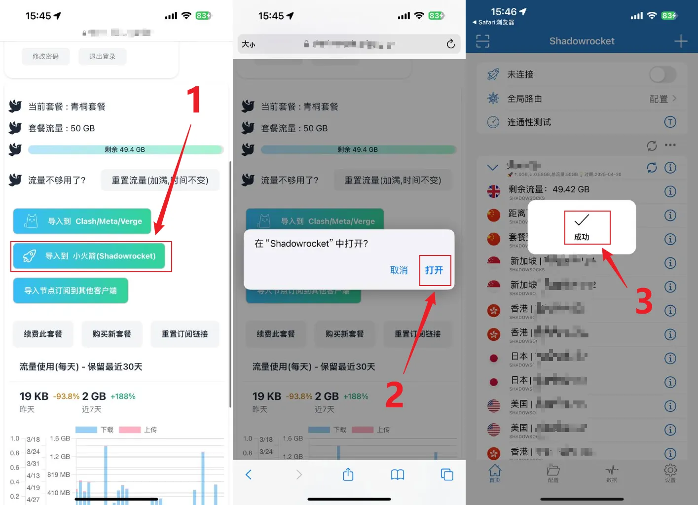 操作步骤: safari登录网站,点击首页仪表盘的 导入到小火箭(Shadowrocket), 如下图;